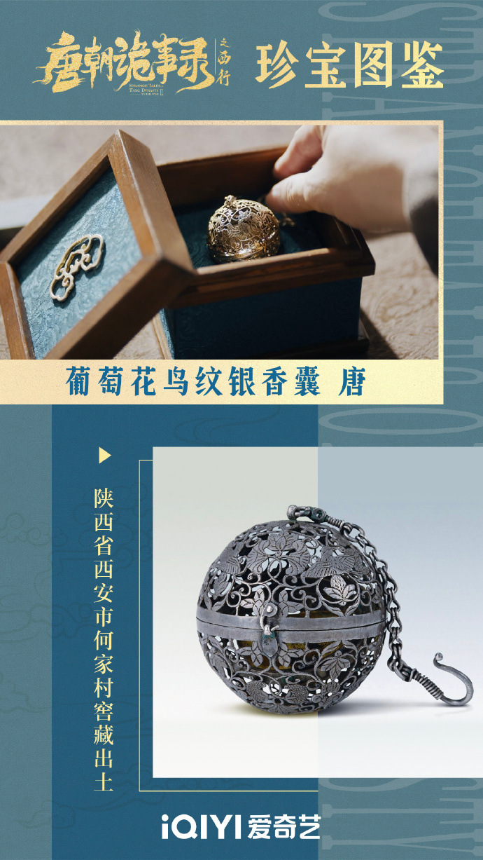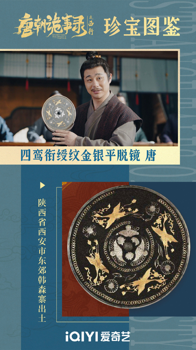 有人发现《仵作之死》中“斗宝大会”里的宝物:四鸾衔绶金银平脱镜、鸳鸯莲瓣纹金碗、葡萄花鸟纹银香囊、独孤信多面体煤精组印……在陕西历史博物馆中都能找到原型;