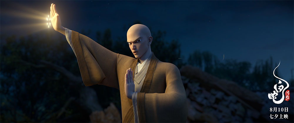预告中,法海佛珠轻捻,神兽金毛犼作狮子吼,威震天地,小白化身巨蛇与法海决战,场面酷炫激燃。而最为感人的是,许仙此次一改大众认知里文弱书生的印象,直面法海,袒露心声:“我家娘子虽然是妖,但我们情意相投,她从不曾亏负我!”并吹响法器玉笛,撕心裂肺地再次喊出他们的大婚誓约:“赤绳早系,白首永偕……”小白许仙双向奔赴,生死相随共克难关的历程,被不少观众誉为“最具中式浪漫的故事”。