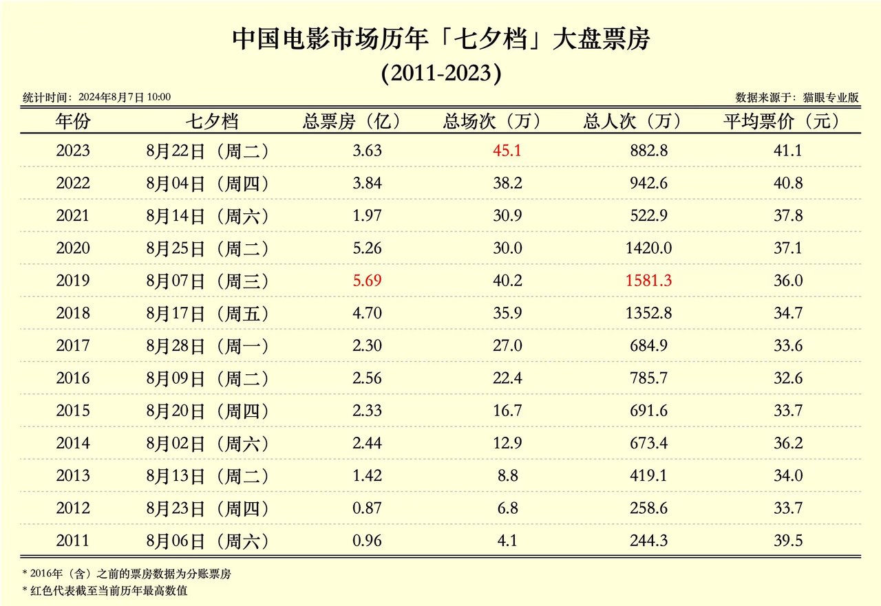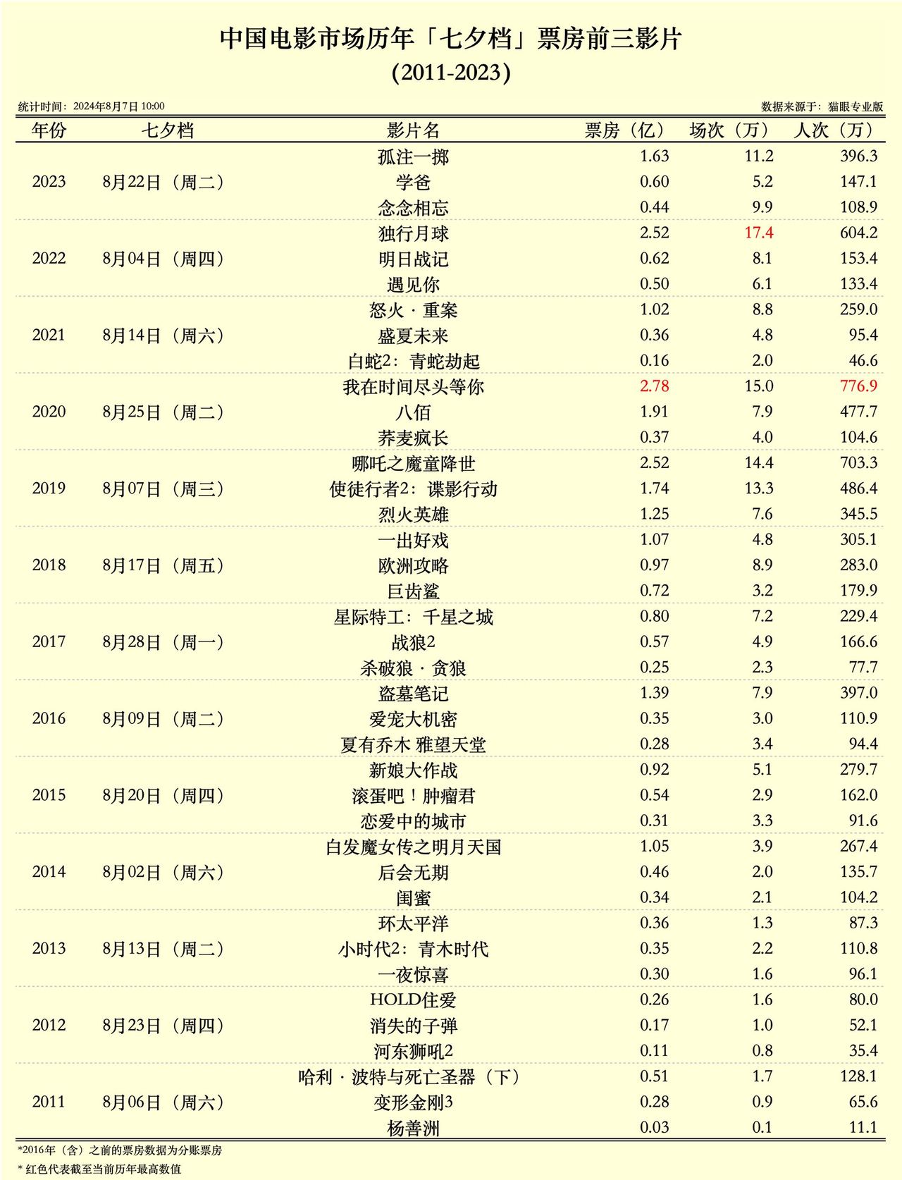 据悉,去年七夕档票房是3.63亿,票房冠军是《孤注一掷》。