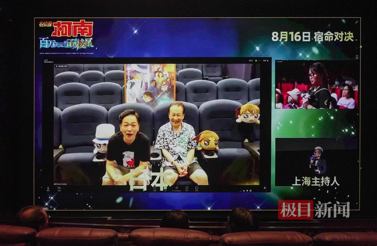 在武汉首映礼现场,数百位观众看着大银幕上的“怪盗基德”和“服部平次”,试图从他们口中探听关于柯南世界的那些秘密。作为这两位角色的日语原声配音演员,山口胜平和堀川亮也在线上机智地应对着5地粉丝的接连提问,在不剧透的前提下分享独家信息。山口胜平在互动中调侃道,每到奥运年,基德就会在剧场版中登场,堀川亮则表示,他期待在后续剧场版剧情中,服部平次能够在上海来一场摩托车飞越高楼的动作戏。