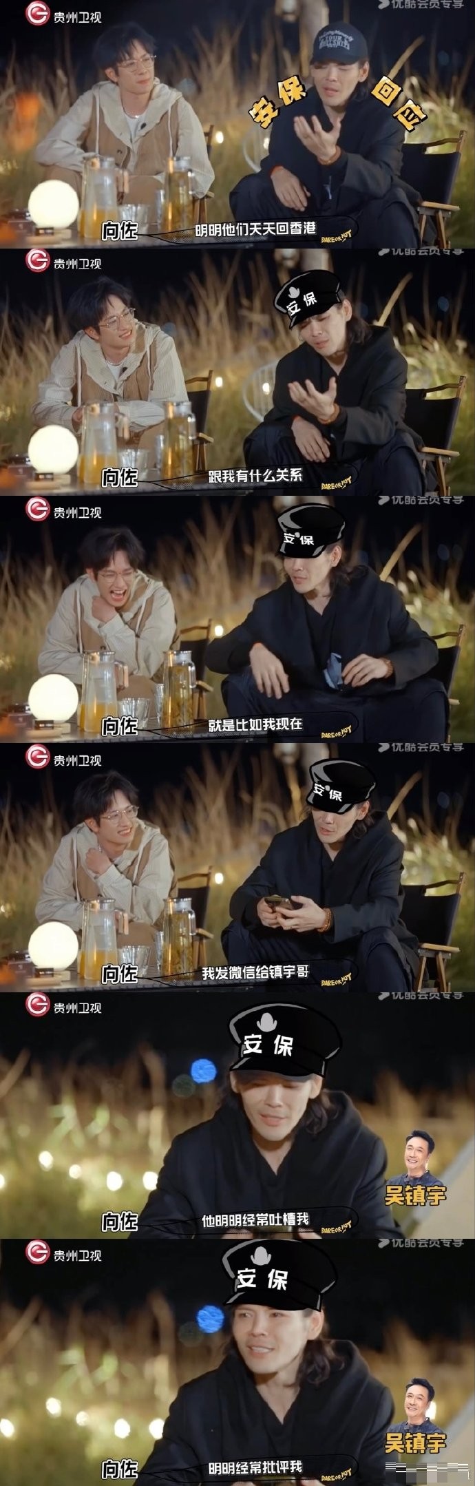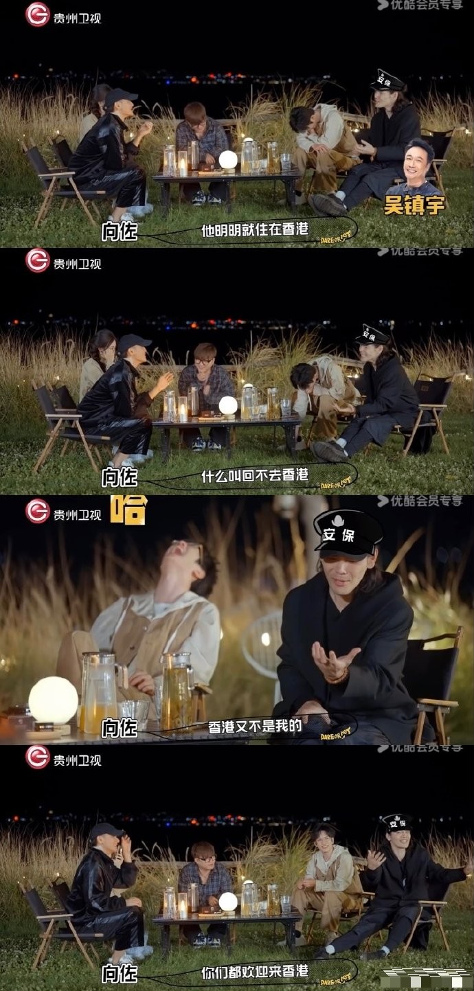 向佐近日正式在综艺里说到,“普罗大众的二创都会脑补‘人情世故’这四个字,面对人情世故我很迷茫,明明他们天天回香港,我跟镇宇哥发微信,他经常吐槽我批评我,我怎么就不让他们回香港了,香港又不是我的,(你们)都欢迎来香港。”