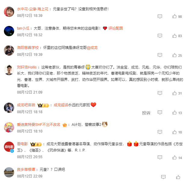 成龙提到元奎“已经离开”让很多网友惊讶:“元奎去世了吗?”记者向圈内人士了解到,元奎去世的消息其在去年已有耳闻,当时听说家人希望不对外公布,所以知者不多。