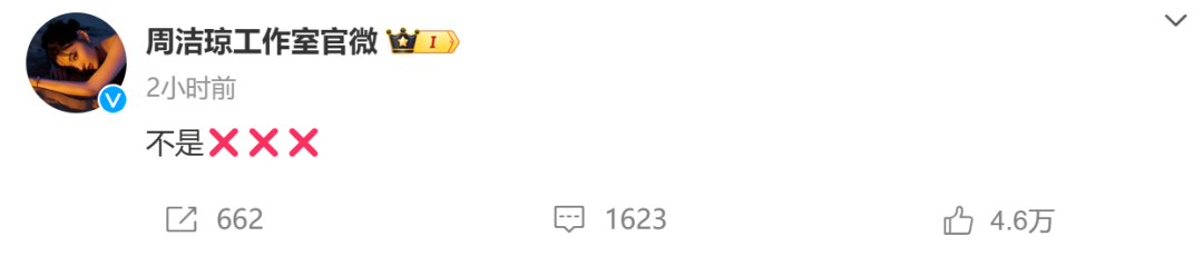 有网友评论“看着像周洁琼”,随后,周洁琼工作室官微连发三个“×”回复:不是×××。