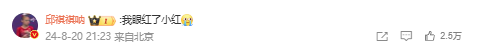 有意思的是,这条微博还引起了中国体操运动员邱祺缘的实名“眼红”: