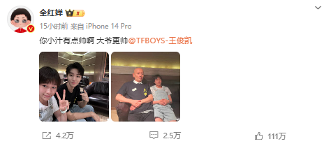 在分享照片时,全红婵配文“你小汁(王俊凯)有点帅啊”。王俊凯在评论区回复道,“我宣布:小汁小帅,大爷更帅,水花消失术超帅!大爷和我的10cm跳台红姐妹妹有空的时候也可以审判一下!”