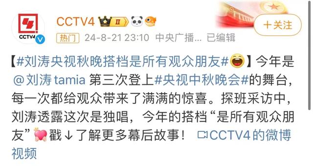 8月21日,南昌籍演员刘涛现身央视新闻直播间,宣布她将第三次登上央视中秋晚会舞台。在采访中,刘涛还透露这次的表演是独唱,而且今年的搭档“是所有观众朋友”!