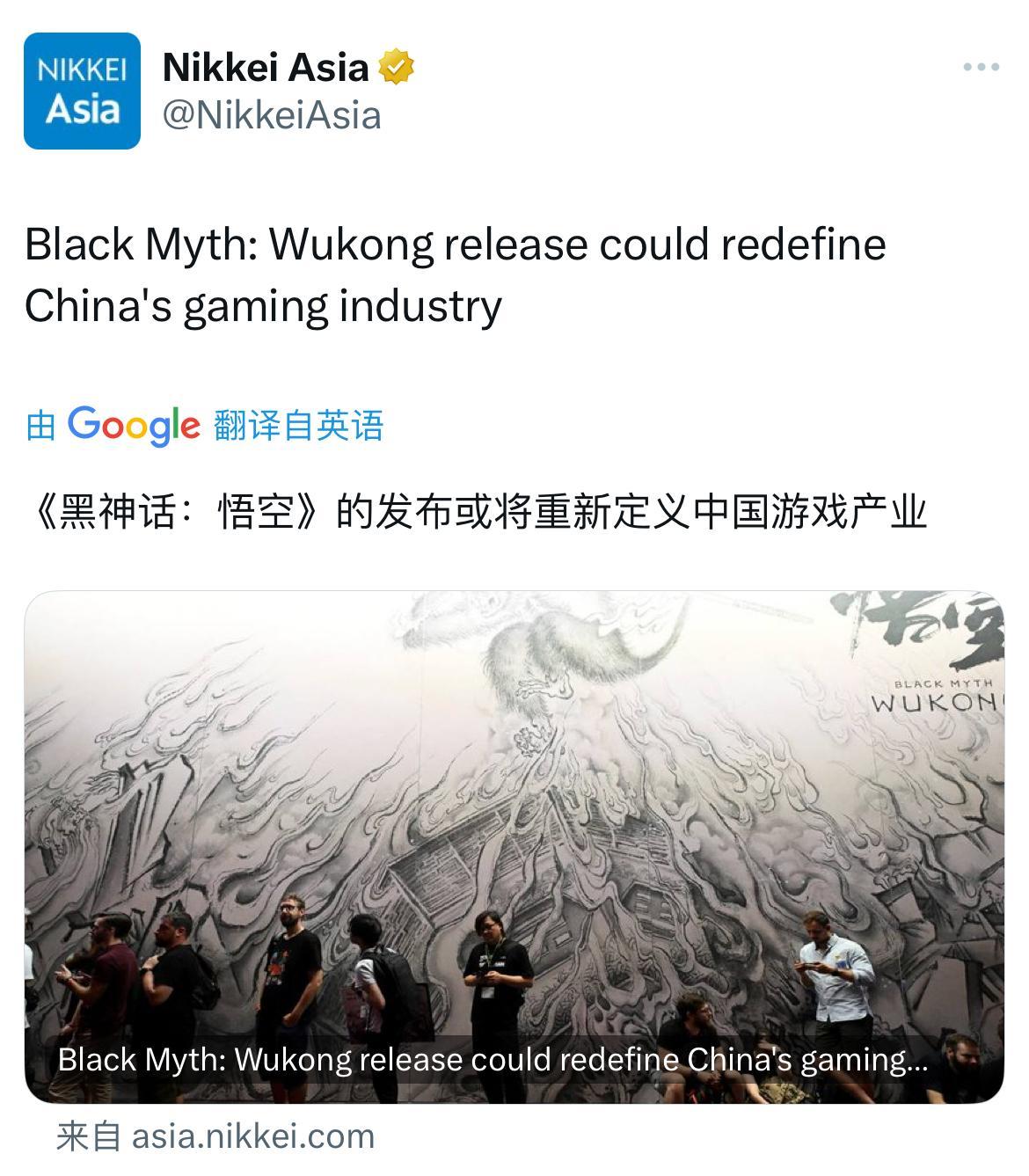 《日经亚洲评论》发文称,这款游戏的发布可能重新定义中国的游戏行业