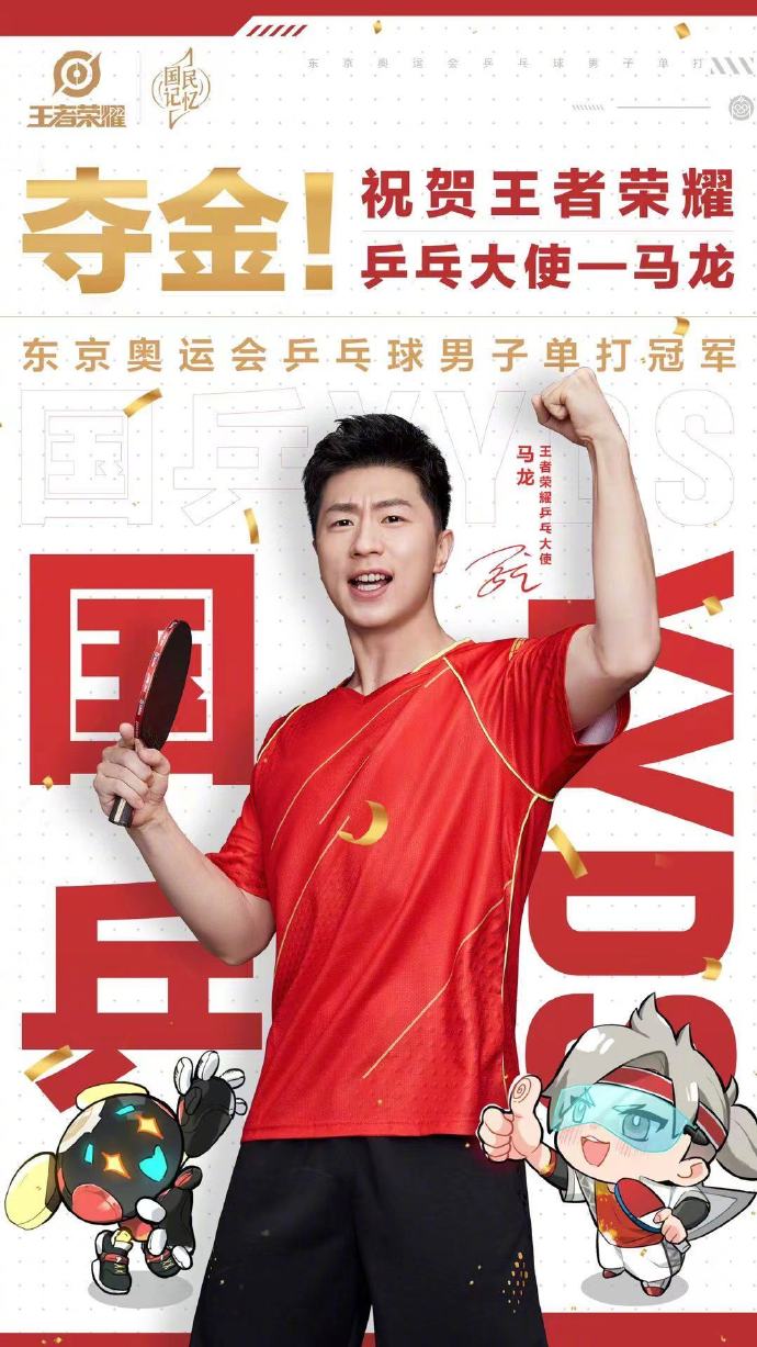 2021年的东京奥运会期间,马龙还客串了鲁班父子的乒乓球皮肤宣传片,担任乒乓大使。
