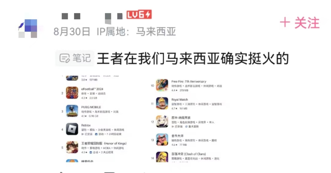 评论区里,有来自马来西亚的玩家表示,《王者荣耀》在马来西亚的热度不低。据该网友放出的截图,《王者荣耀》在马来西亚的游戏热度排行榜中排行第五。