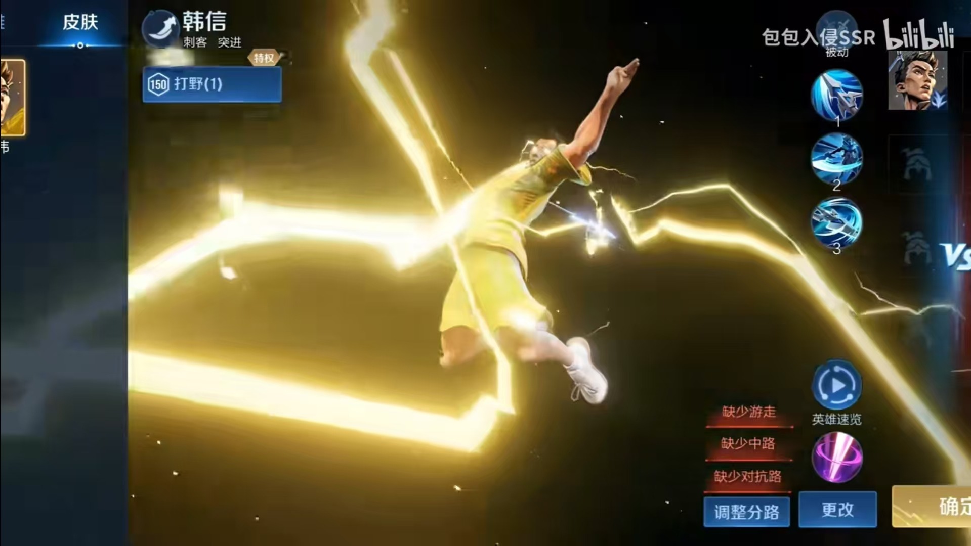 在英雄出场动画中,韩信跃起扣球,周身闪烁着金色闪电特效。不得不说,这款皮肤设计让韩信多了一份运动员的飒爽英姿,在游戏里也能感受到体育精神。