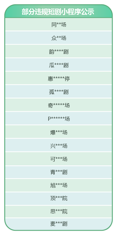 部分违规短剧小程序公示