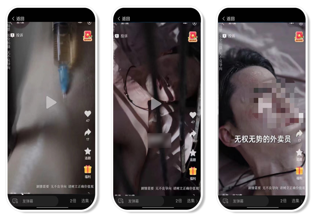 存在宣扬不良行为,涉毒品针管注射等严重违规情况。