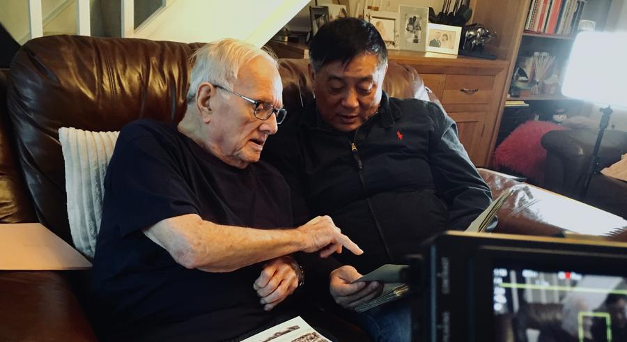 电影摄制团队采访“里斯本丸”沉船事件亲历者丹尼斯·莫利。方励团队供图