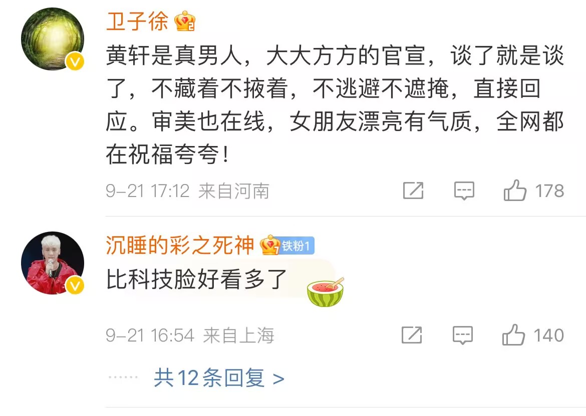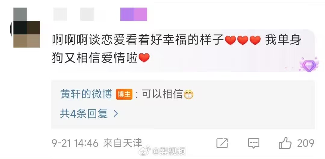 随后有网友在评论区求证女方身份,黄轩大方回应,正式官宣恋情。