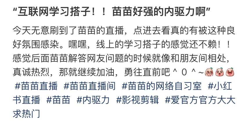 网友表示,苗苗也不说话,就是一顿学,点进去看真的有被这种良好氛围感染。