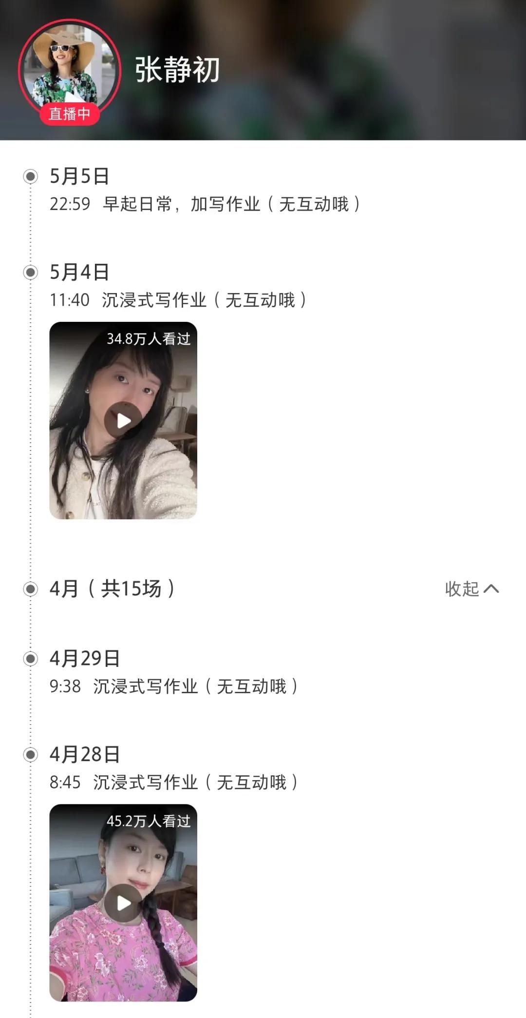 同样,直播学习的女明星还有张静初。早前,张静初就在直播备考研究生。