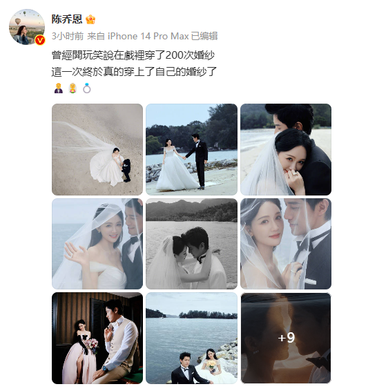 9月22日,45岁陈乔恩与丈夫艾伦在定情地举办婚礼。陈乔恩晒出18张婚纱照,发文称:“曾经开玩笑说在戏里穿了200次婚纱,这一次终于真的穿上了自己的婚纱了。”