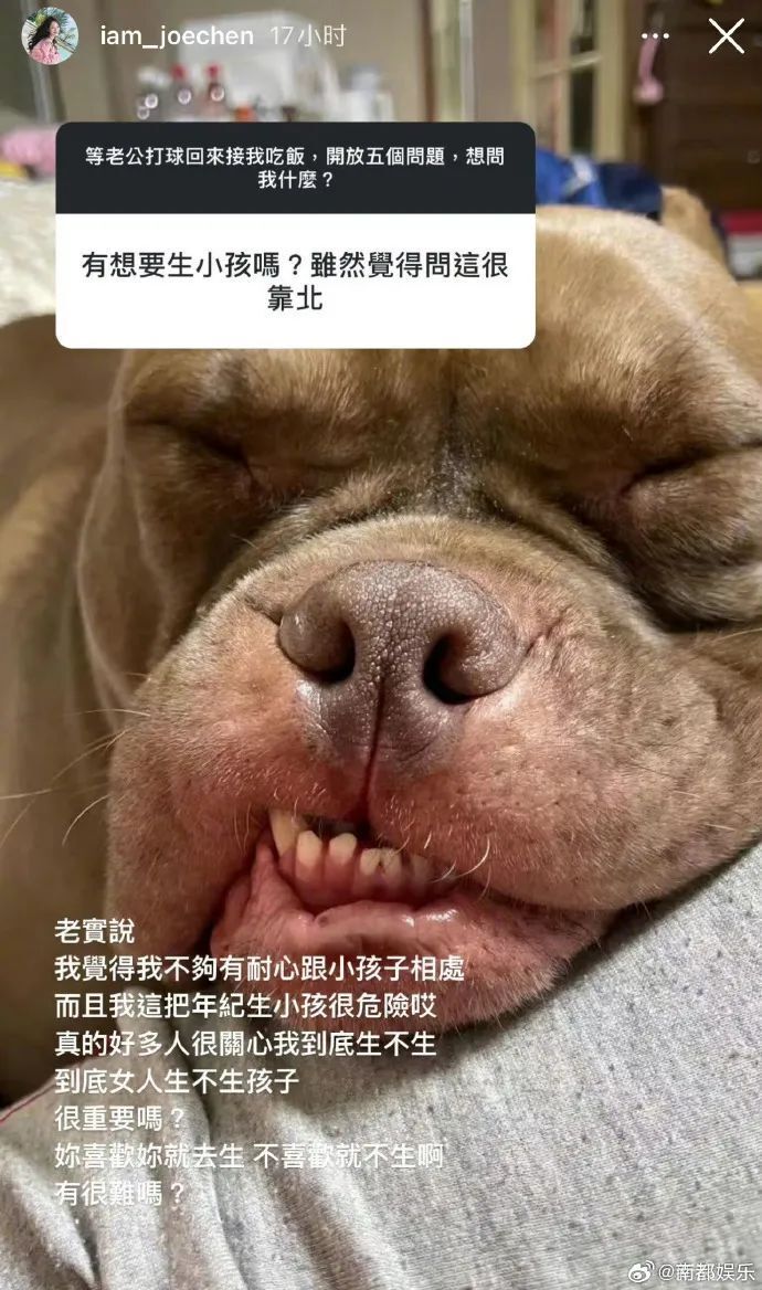 10月8日,女演员陈乔恩在社交平台回复粉丝提问“有想要生小孩吗?”
