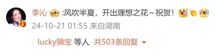 评论区里,演员李沁、王仁君现身为赵丽颖道喜,“风吹半夏,开出理想之花~祝贺!”“争气的六妹,努力的丽颖!为你鼓掌,继续加油!”。