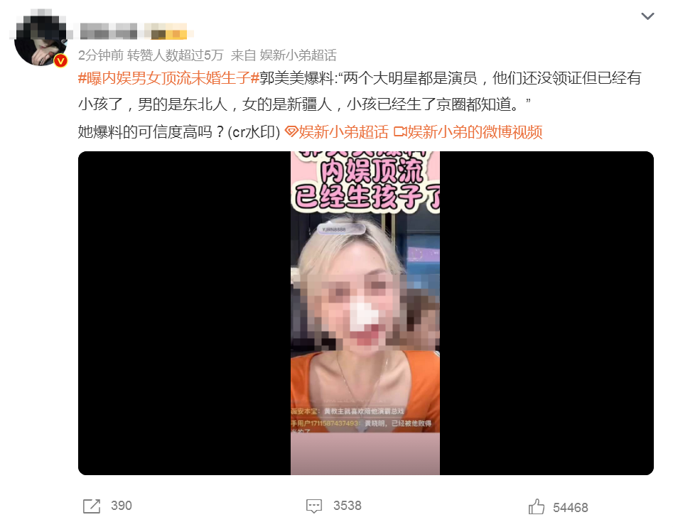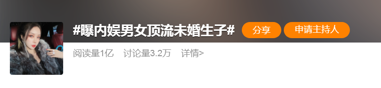 10月21日,有博主爆料称:两个明星没领证已有小孩,男的是东北人,女的是新疆人……随后,#曝内娱男女顶流未婚生子#词条获得大量关注,引发热议。