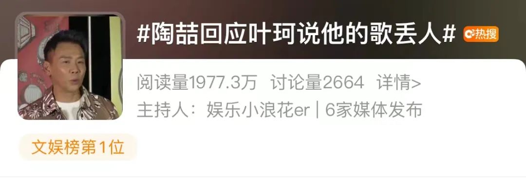 刚刚,#陶喆回应叶珂说他的歌丢人#冲上微博文娱榜热搜第一。
