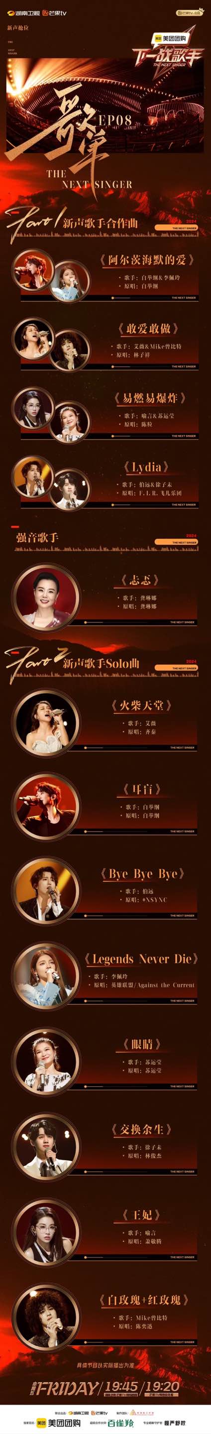 合作舞台之外,新声歌手也为第二轮的独唱提前准备了《火柴天堂》、《耳盲》、《Bye Bye Bye》、《Legends Never Die》、《眼睛》、《交换余生》、《王妃》、《白玫瑰+红玫瑰》等抒情、流行、唱跳、摇滚多风格舞台。