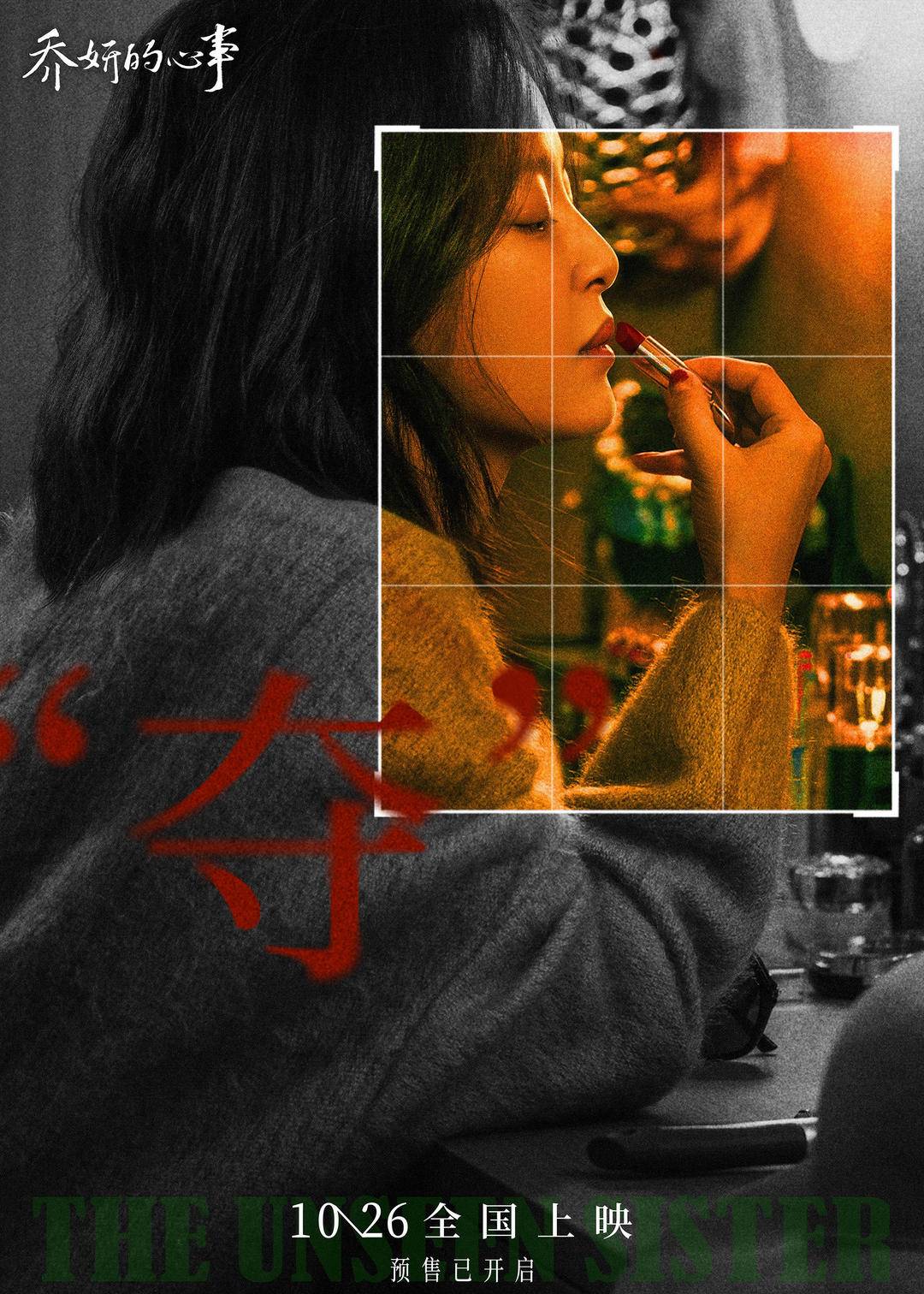 电影《乔妍的心事》姐妹既是敌对又是共犯,共生成为彼此救赎,影片同时发布一组人性细节图,“狠妒”“怒欲”“狡”“贪”分别对应着每个主角被窥探到的隐秘底线。当来之不易的一切被姐姐觊觎,乔妍表现出的是狠戾妒忌;当看到妹妹与自己地位悬殊,大乔表现出的是愤怒和欲望;经纪人沈皓明和于亮,则分别表现出狡诈和贪念。聚光灯下的人,经得起人性的审判吗?人性与情感博弈谁更胜一筹?真相静待上映揭晓。
