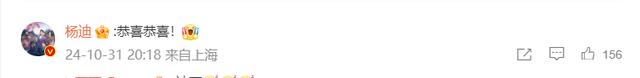 杨迪也在评论区留言送上祝福:恭喜恭喜!