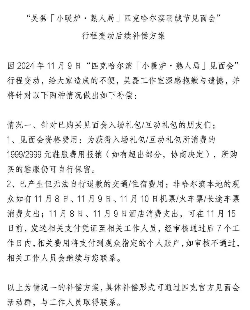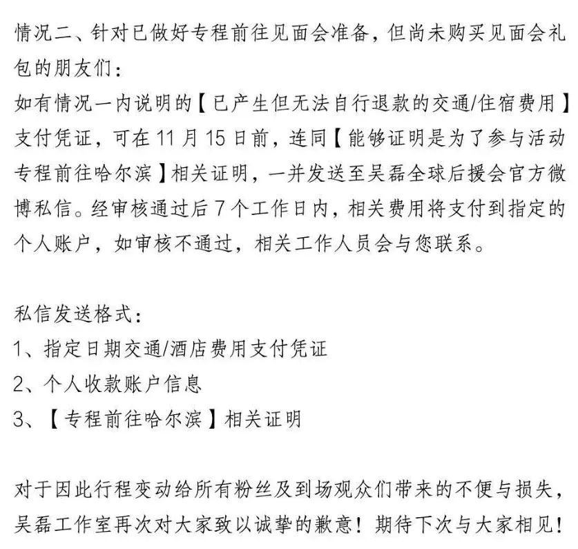 对于因行程变动给所有粉丝