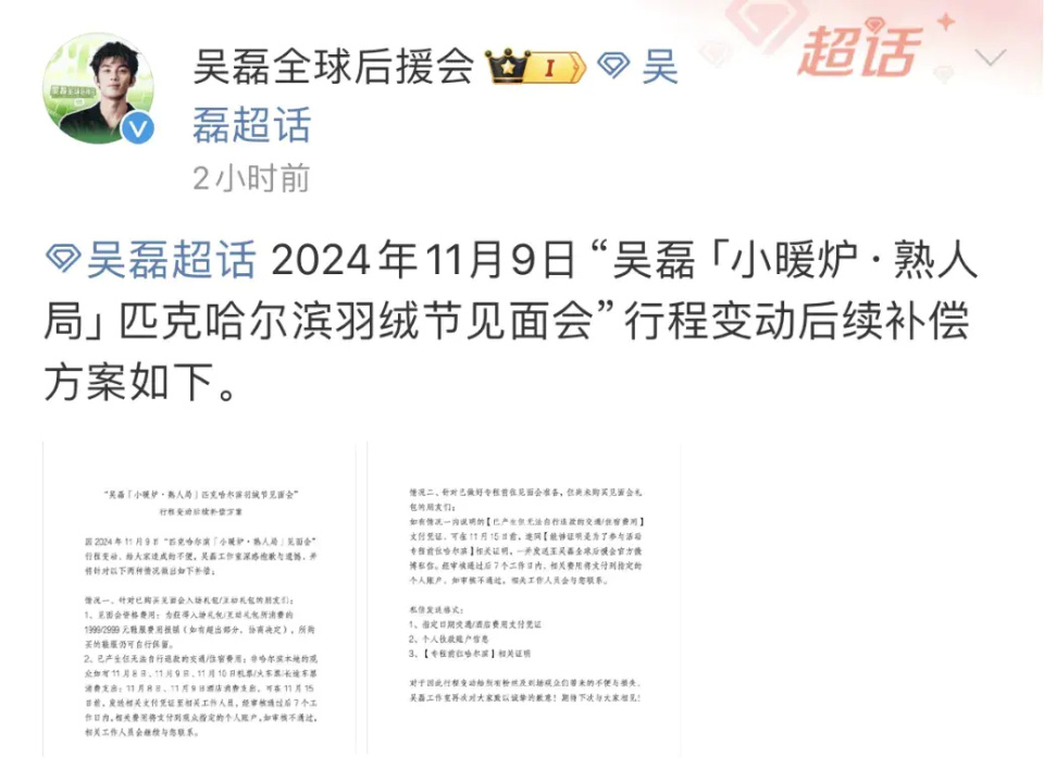 @吴磊全球后援会发博称: