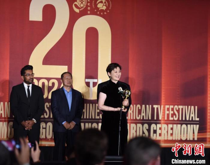当地时间11月8日,第20届中美电影节、中美电视节在美国洛杉矶举行开幕式暨“金天使奖”颁奖典礼。图为徐帆凭借《烟火人家》获电视类最佳女主角奖。 中新社 记者 张朔 摄