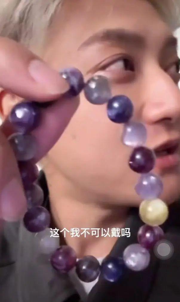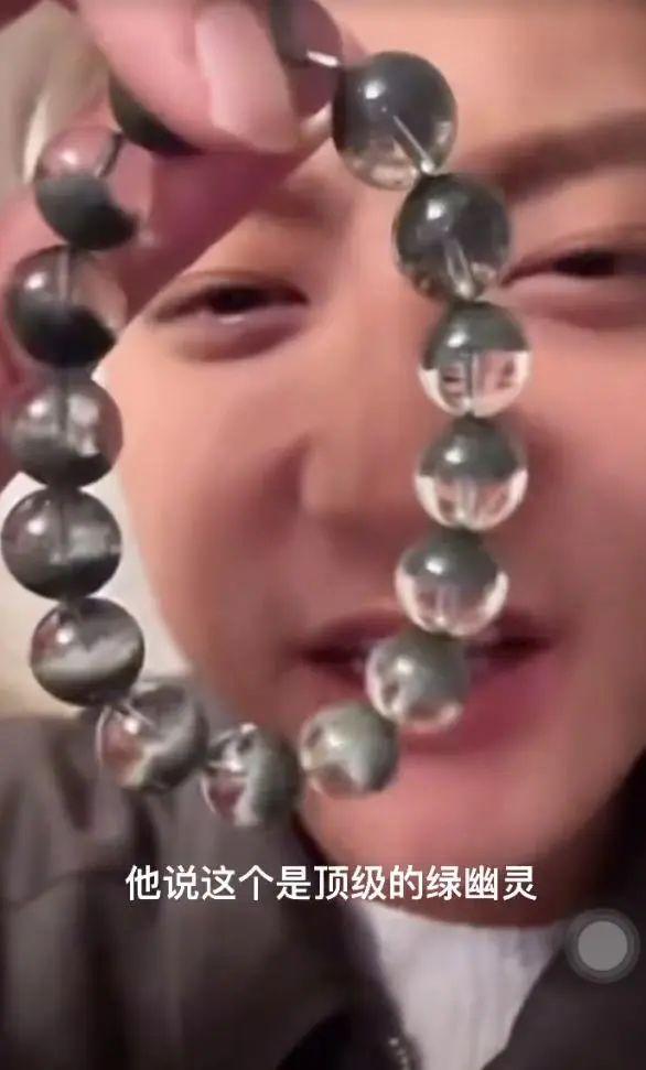 并晒出未婚妻送他的半盆绿幽灵手串。