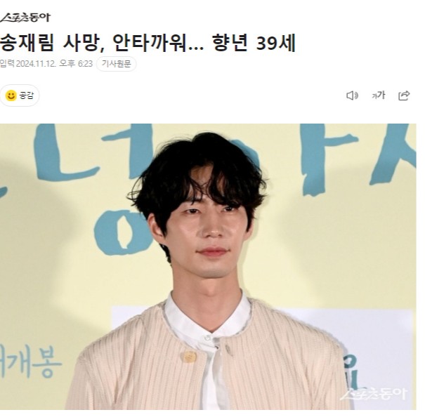 据韩媒,经警方确认,演员宋再临在今天下午去世,终年39岁。据悉,宋再临曾在《拥抱太阳的月亮》中饰演“金济云”一角被观众熟知。