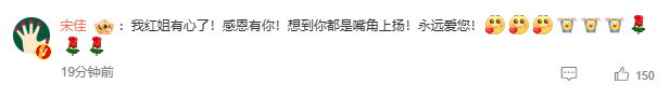 13日中午,宋佳现身评论区回应:“我红姐有心了!感恩有你!想到你都是嘴角上扬!永远爱您!”