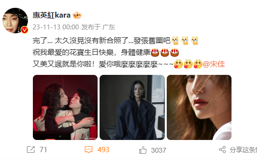 这已经是惠英红第二年为宋佳卡点发文庆祝生日,去年11月13日,惠英红在零点发文祝宋佳生日快乐,并配上二人合照。