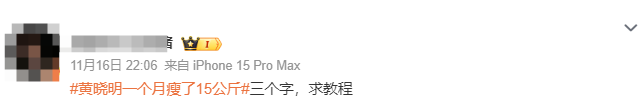 11月17日,“黄晓明一个月瘦15公斤”的话题引发网友关注,明星减肥法又出“新教程”了?原来,一部由黄晓明主演的电影于11月16日上映,黄晓明为拍摄该片,使用了果蔬汁减肥法。黄晓明工作室也晒出了黄晓明喝果蔬汁减肥的经历,并提醒网友“科学减肥,请勿模仿”。