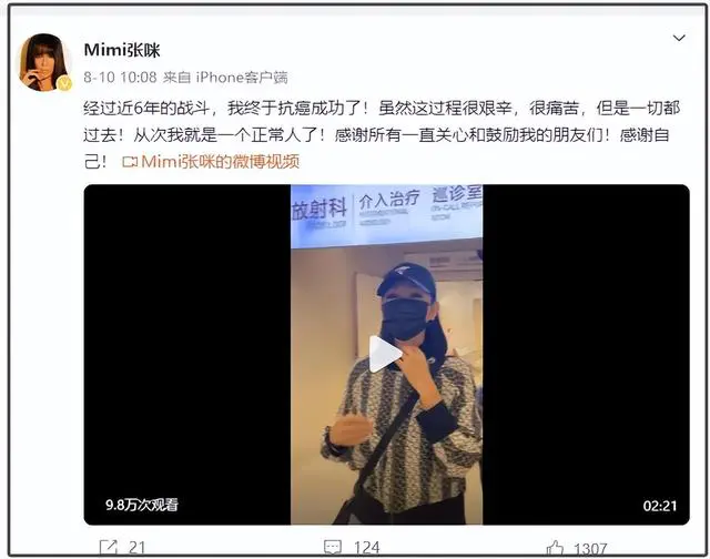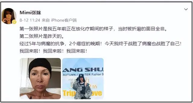 今年8月,她曾发文称经过近6年的战斗,经历了两次癌症晚期后,战胜了癌症。