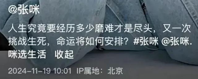 11月26日,中国内地流行乐女歌手张咪在个人社交平台发布视频回应的大家关心,张咪称经过6个小时的时间,手术顺利,平安!一切都好!