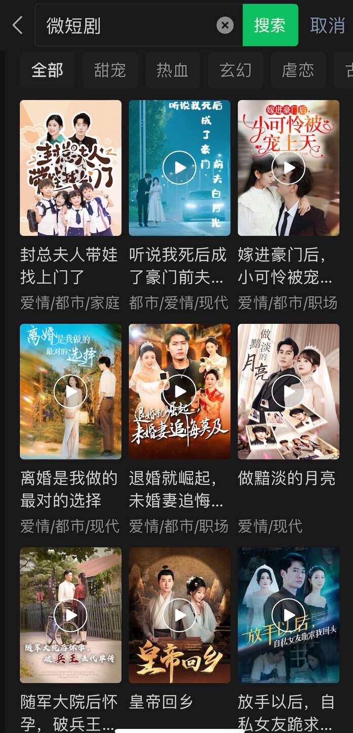 打开短视频平台内的短剧列表,精选短剧排名前列的剧集包括《你喜欢阔少,我暴露家产你哭什么》《豪门千金来自农村》《强势锁婚》《关总宠妻无度》《我被霸总强制闪婚》《封总夫人带娃找上门了》《嫁进豪门后,小可怜被宠上天》等内容,“霸总文学”在微短剧行业中占据重要比例。