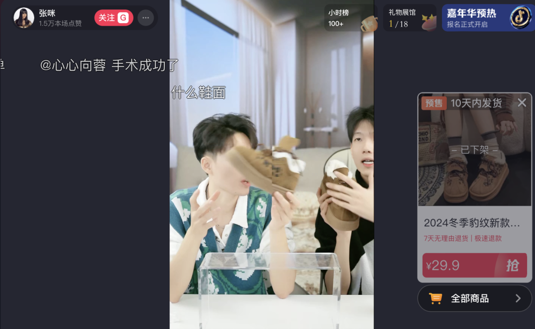 11月26日12时,张咪的抖音账号正在直播,但直播内容为“咪选生活”直播带货内容,张咪本人并未出镜。