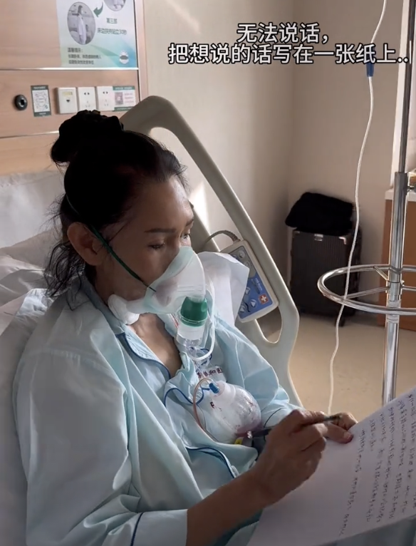 因为无法说话,张咪只能靠手写的方式写出自己想说的话,此时她身上插着管子,还流着许多积液,让人心疼不已,就如她说的那样,最难熬的时刻过去了。