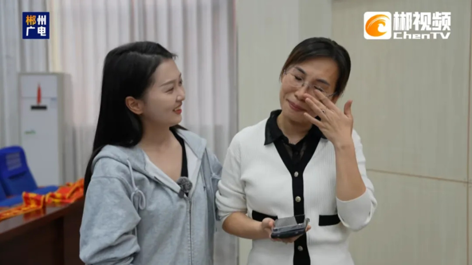 小邓同学如今已经成为了郴州苏仙中学的副校长邓娟娟,看到董浩叔叔的视频,她情绪决堤,流下了泪水。