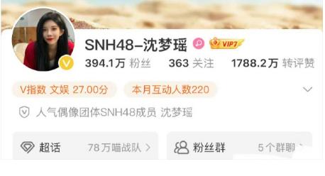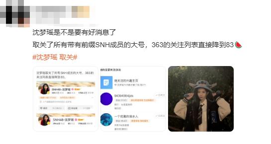 据悉,11月28日,沈梦瑶微博账号已取关了所有带有前级SNH成员的大号,其账号名称前缀SNH48也被删除,引发网友热议。