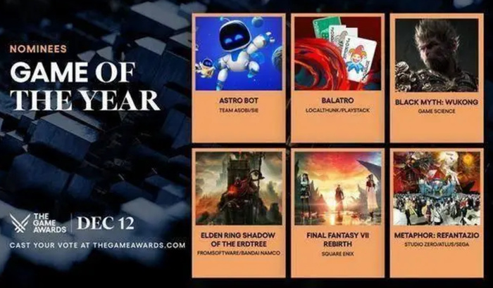 《黑神话:悟空》已经提名TGA 2024 年度最佳游戏、最佳艺术指导、最佳动作游戏、最佳游戏指导共 4 项提名。