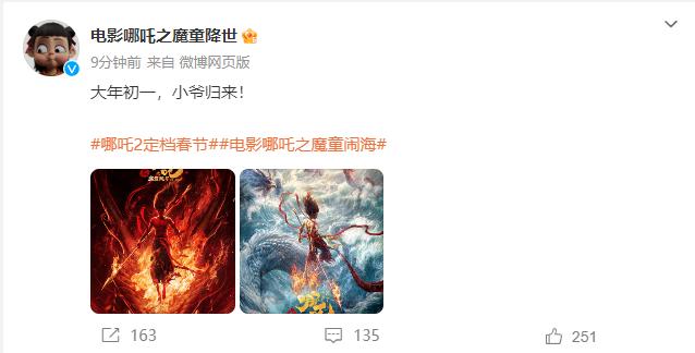 12月10-日,电影《哪吒之魔童闹海》宣布定档,将在2025年大年初一正式上映。