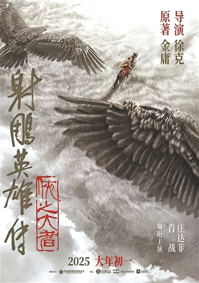 农历大年初一上映的《射雕英雄传:侠之大者》主要改编自金庸先生经典武侠著作《射雕英雄传》第34章至第40章,故事讲述恩怨情仇的江湖,权势角力的战乱时代,郭靖(肖战饰)童年离别家乡,逐渐练就可改变局面和命运的力量,得传天下绝世武功“九阴真经”和“降龙十八掌”,却惹来各方嫉妒,与黄蓉(庄达菲饰)在铁骑箭雨和硝烟旌旗中,力挽狂澜,保护南宋边关。