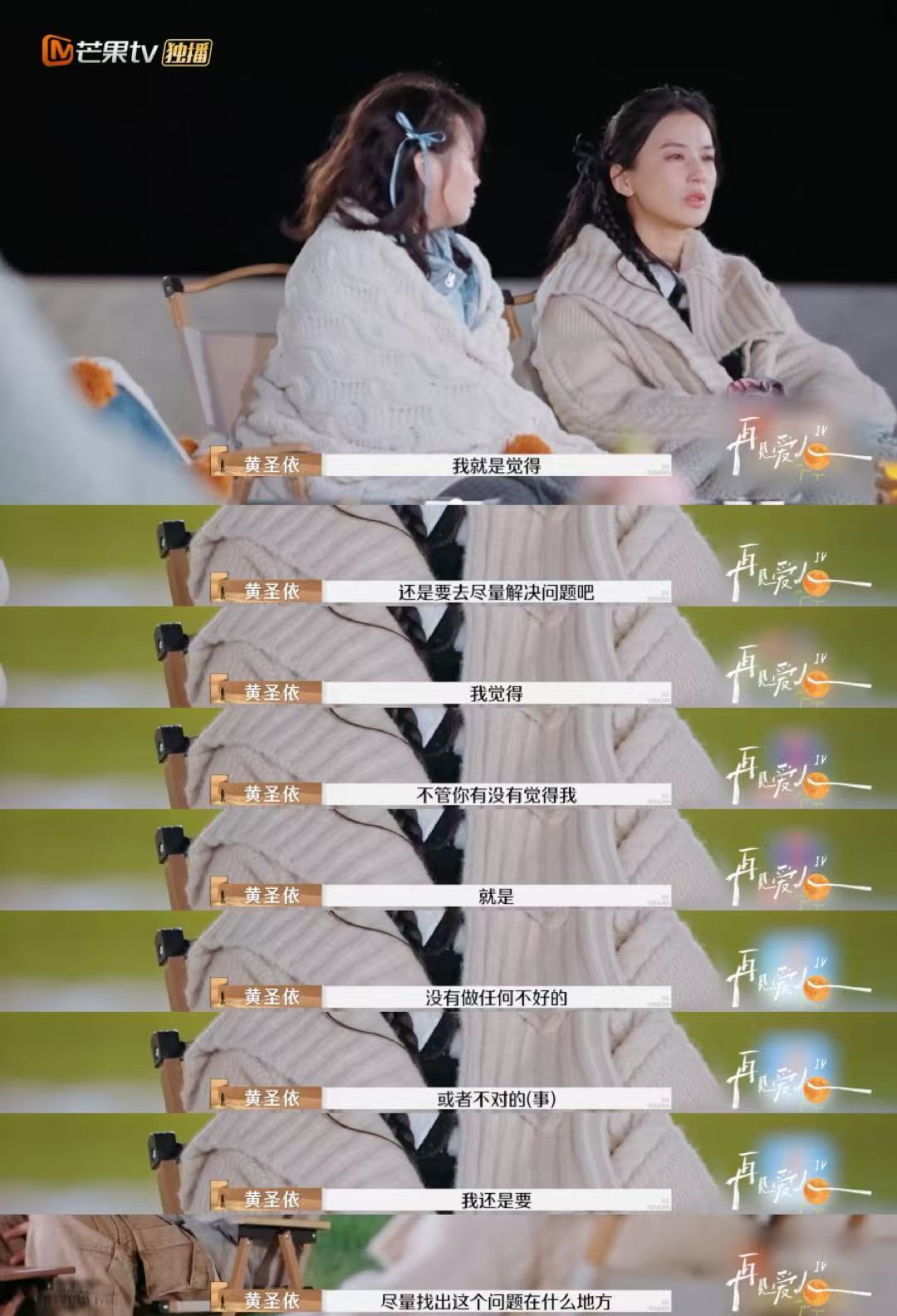 反观黄圣依,她在感情里的基本诉求是希望被看见,被尊重,被包容,看似已接受婚姻的失败,但还一次次在对方的话语里寻找希望。