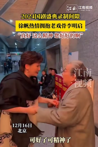 两人见面后,徐帆热情地拥抱了李明启,并亲切地与其交谈。徐帆的表现充满了真诚和敬意,让现场气氛十分温馨。李明启也显得非常开心,两人的互动展现了深厚的情谊。