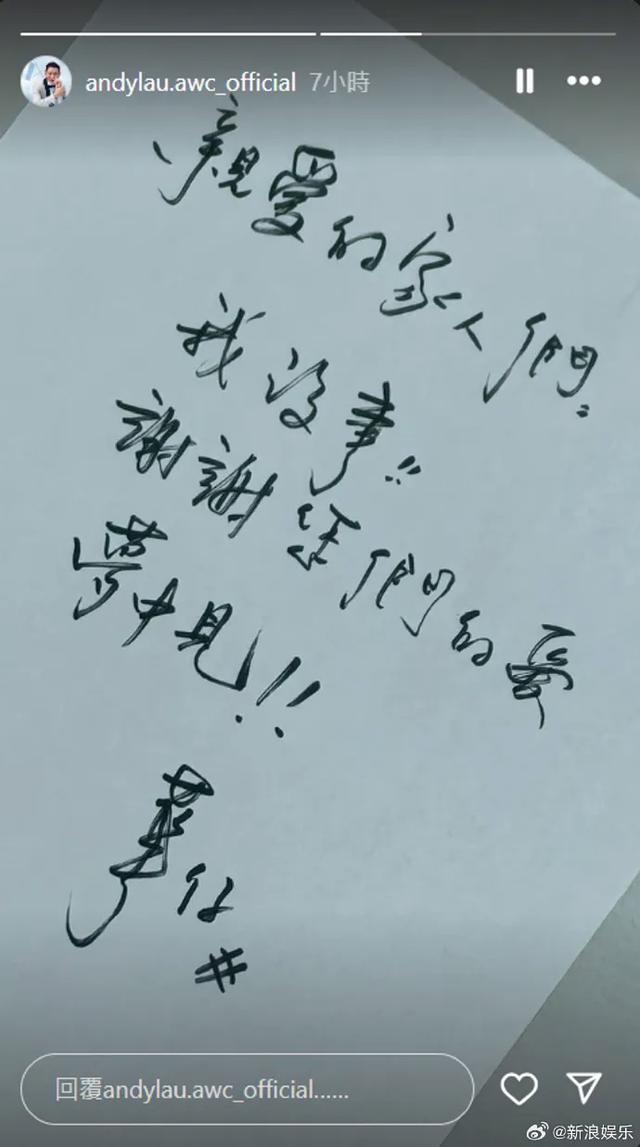 事后,刘德华在社交平台上晒手写信报平安表示:“亲爱的家人们,我没事,谢谢你们的爱,梦中见!”