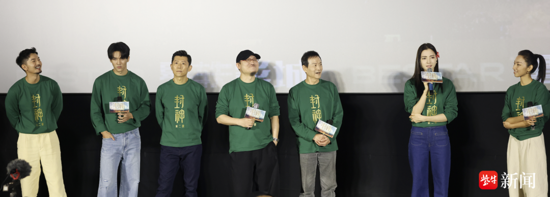 15日下午,春节档电影《封神第二部:战火西岐》来南京,导演乌尔善携“殷商阵营”演员那尔那茜、陈牧驰、娜然、吴兴国、夏雨、刘潮与观众见面。现场反响热烈,还有热情观众给娜然与那尔那茜送上了牡丹纹样的南京绒花发簪,并表示,在南京有一个传统叫做“戴绒花,享荣华”,观众把美好的祝福送给了主创团队。